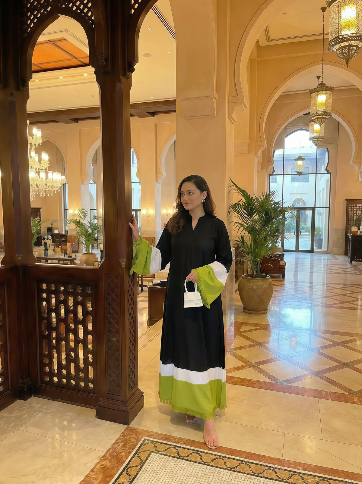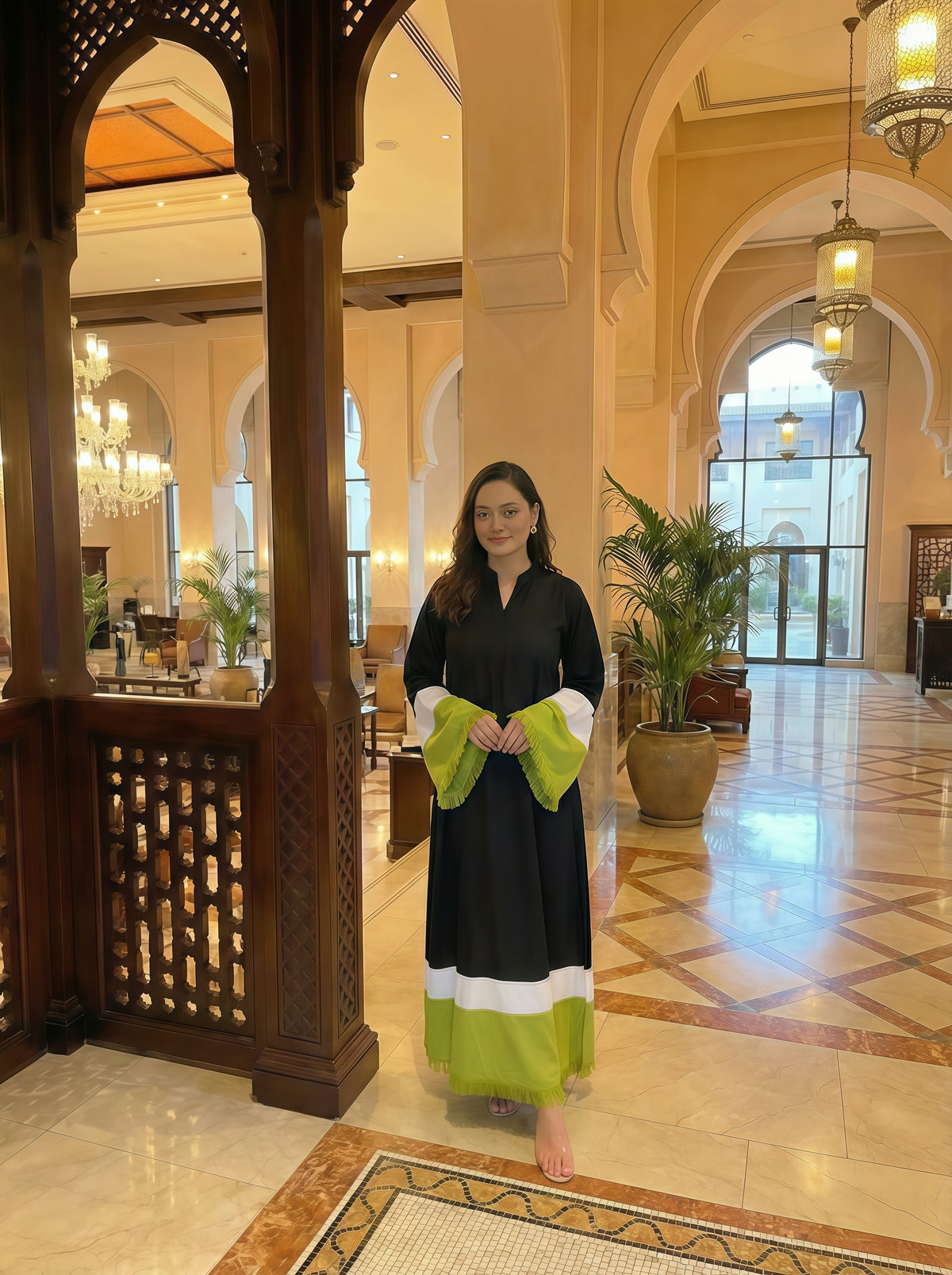 Maintain your class with extra finish work, Fring sleeves with beautiful color combos and hem best for daily and casual wear. High quality fabric, detailed work and stitching.
