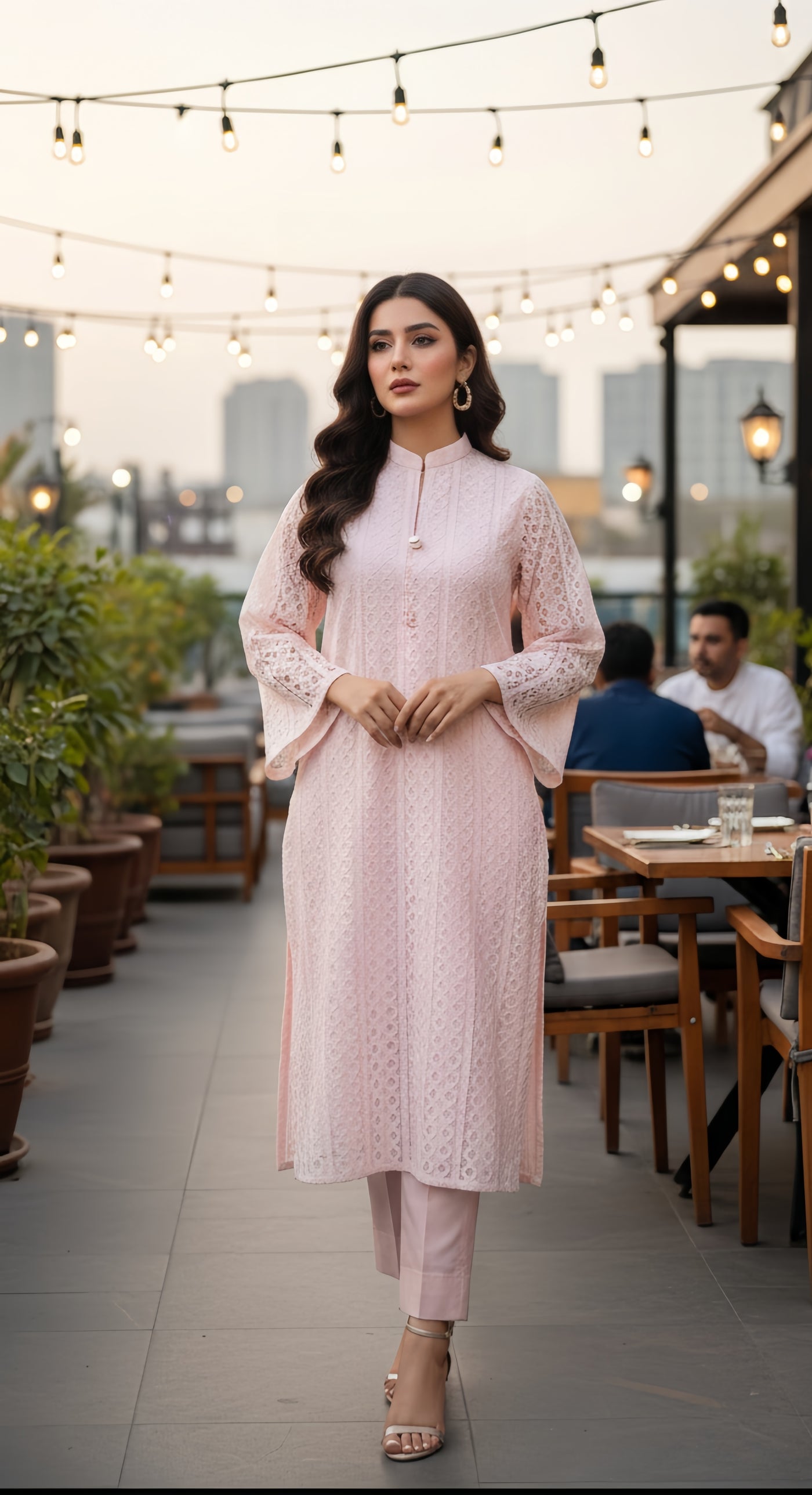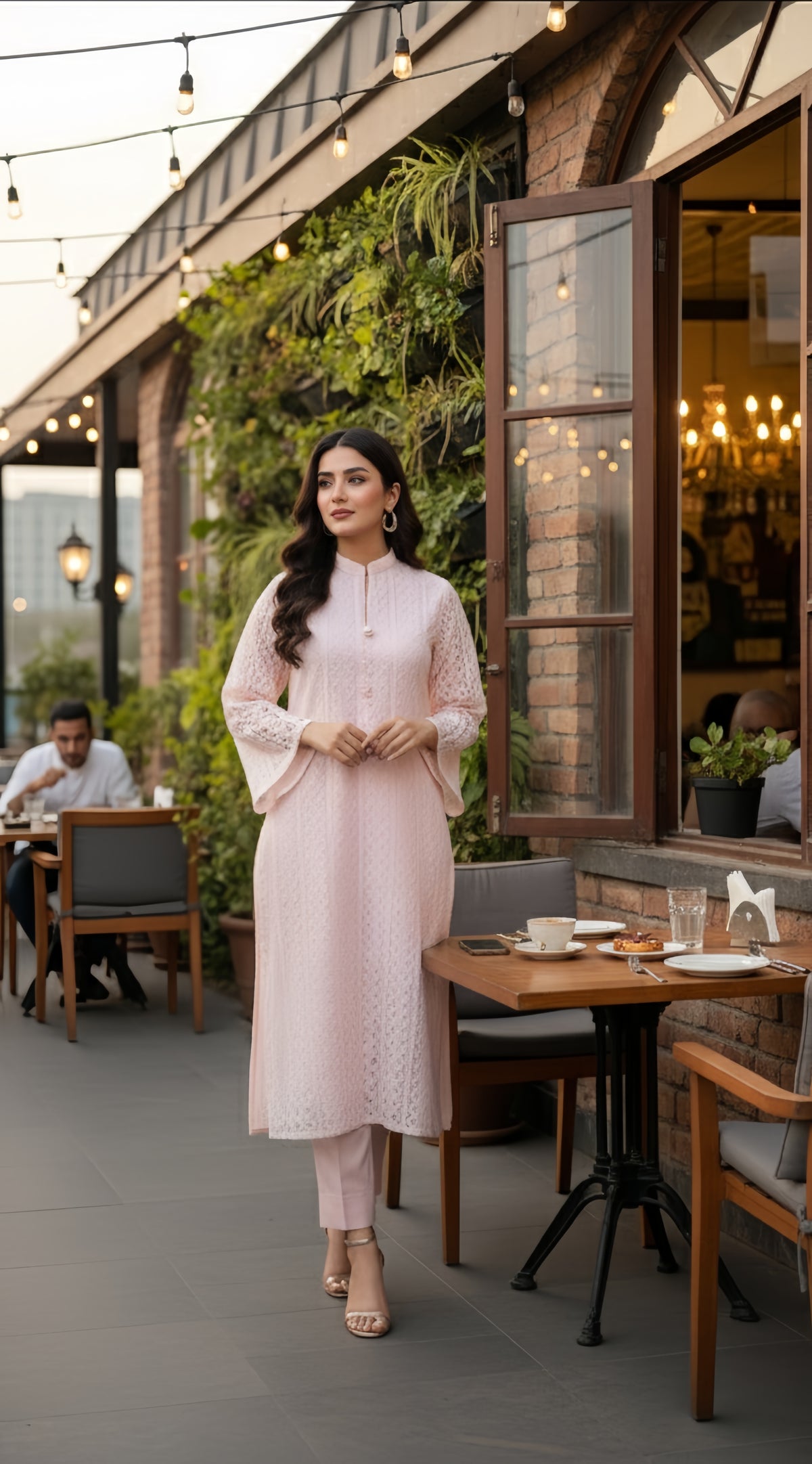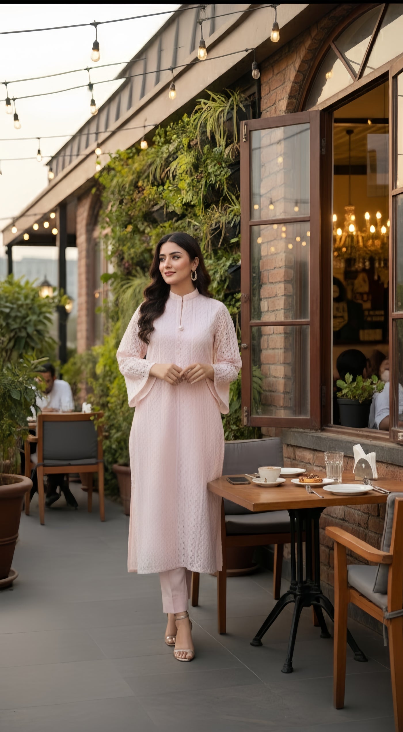Discover the epitome of comfort and style with Momina Ammar's Lightweight Crochet Net Shirt. Immerse yourself in the airy elegance of this meticulously crafted piece, designed for effortless sophistication.
