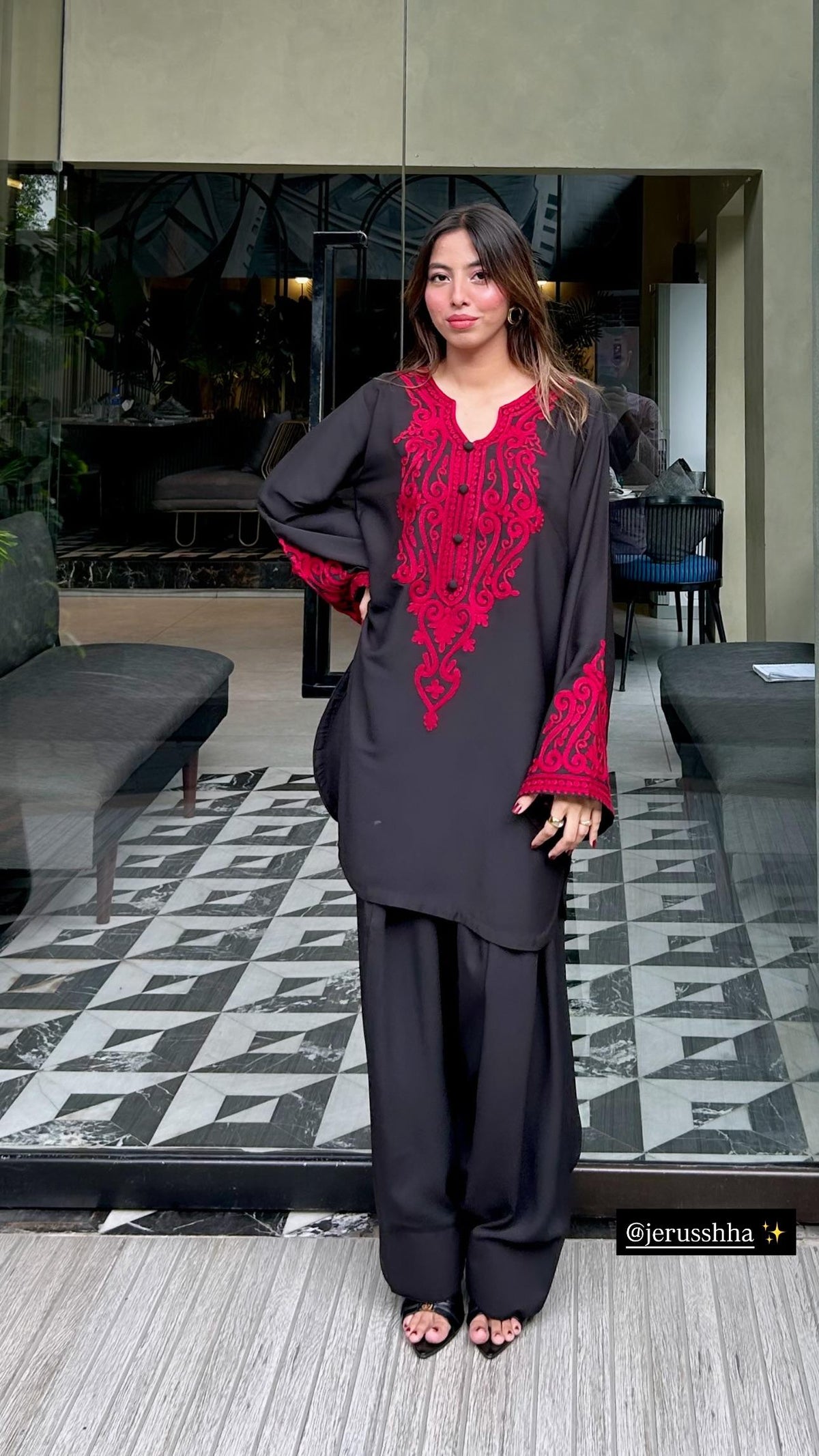 Red Embroidered Ari Work with Farshi black Shalwar✨✨
