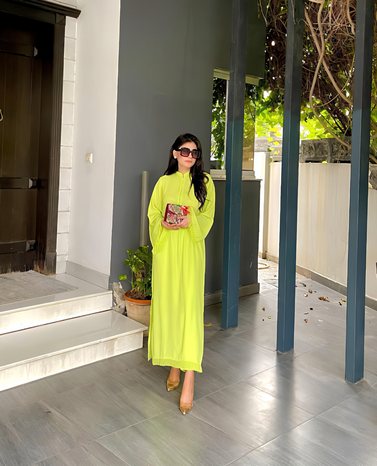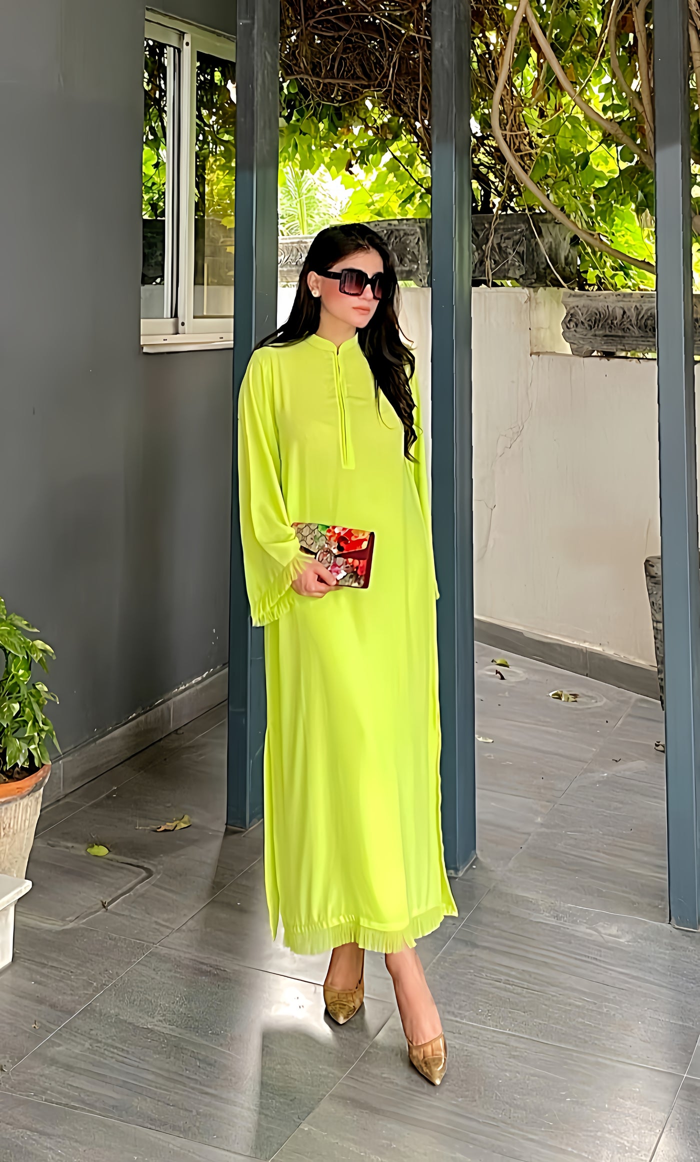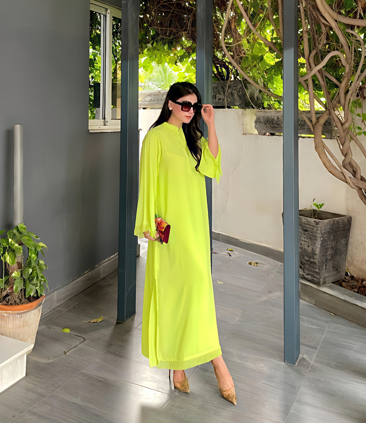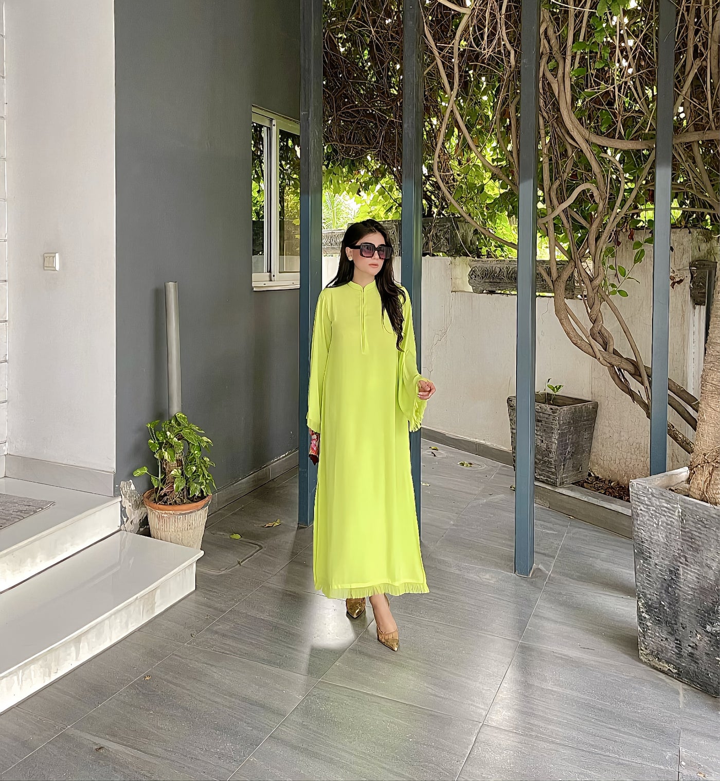 Introducing Neon Fringes by Momina Ammar Clothing. This rare and attractive neon green color is a best seller in Pakistan. Elevate your style with this unique piece.